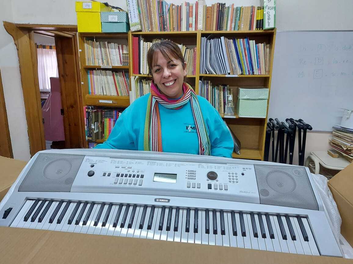 2020 -A new digital keyboard arrives thanks to your continued donations, to enable student numbers to expand at Gaiman music school.