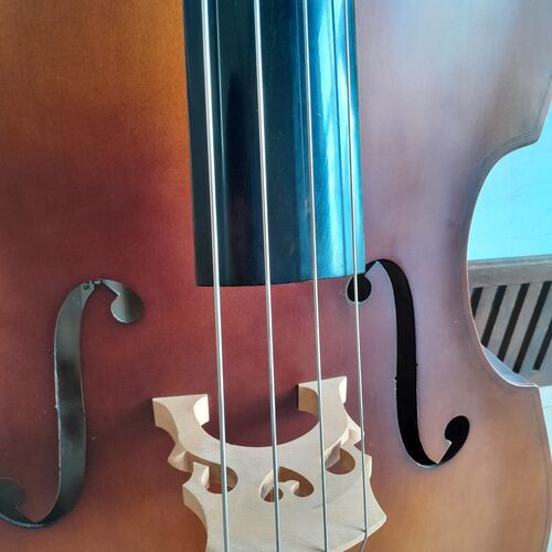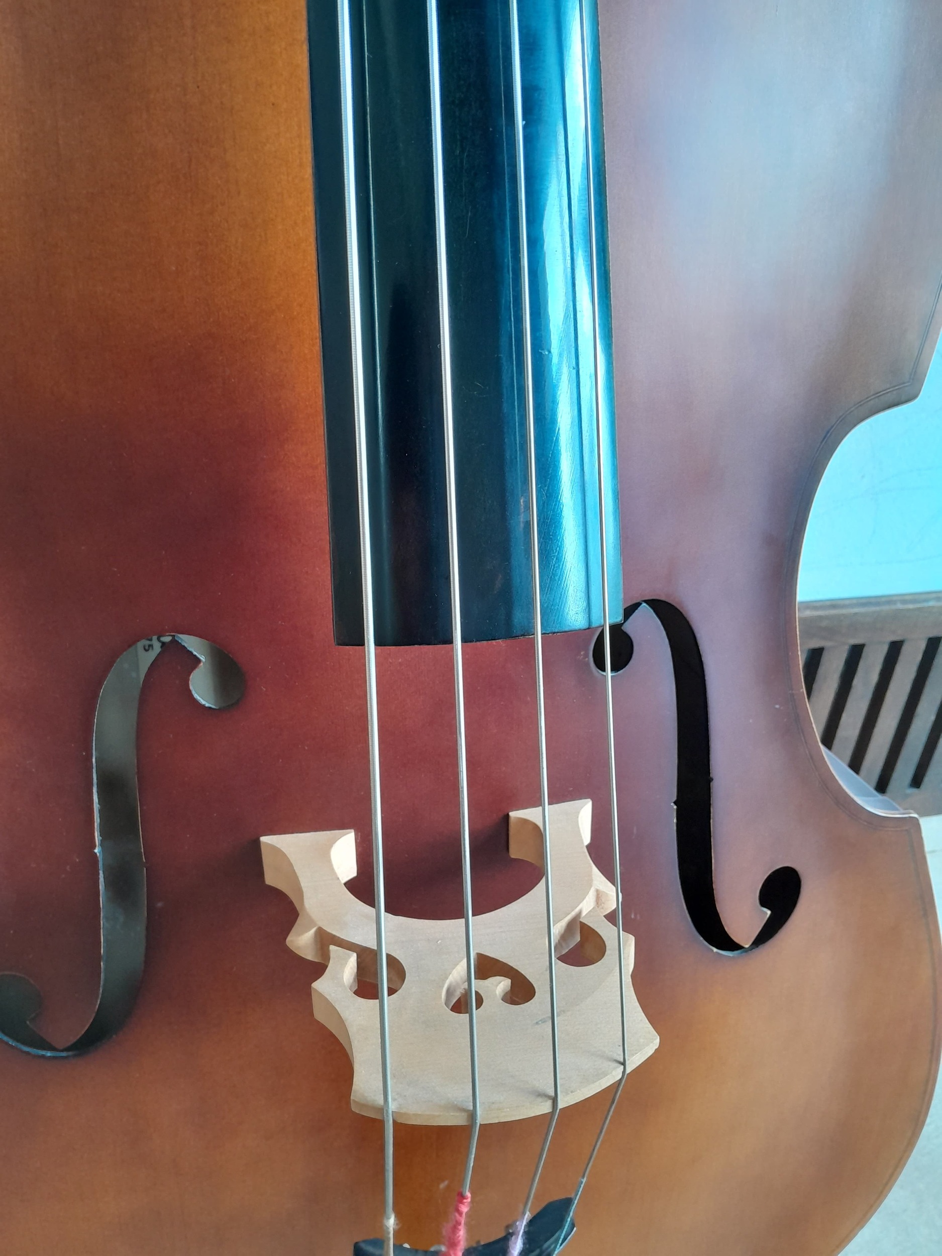 2024 - (5 of 5) The last new Double Bass at Arcos Strings, Trevelin. This is one of the five Double basses PIP has made grants to buy from a family bequest in Wales. It was made to provide opportunities for children to learn the Double Bass, especially for those who could not afford an instrument of their own.