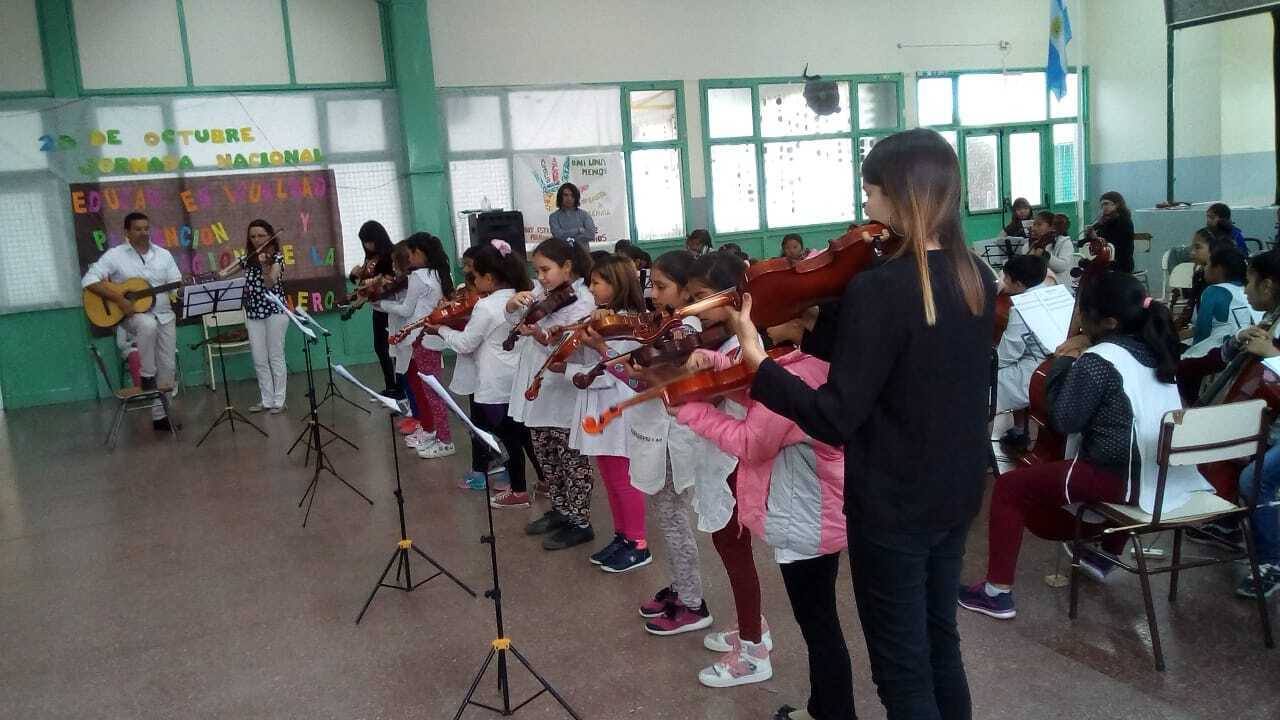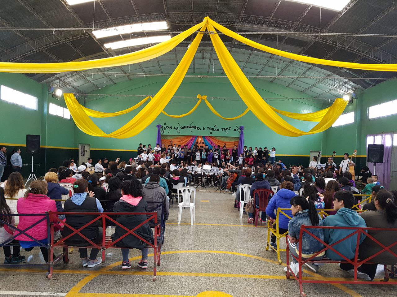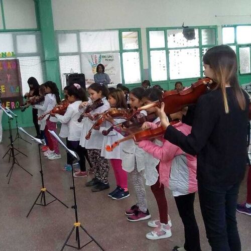 A childrens orchestra in Chubut, usng some of our donated instruments.