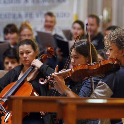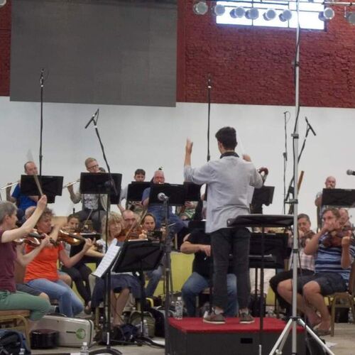 Grant LLewellyn conducts a rehearsal of a side-by-side orchestra with players from BBC NOW and students from Chubut.