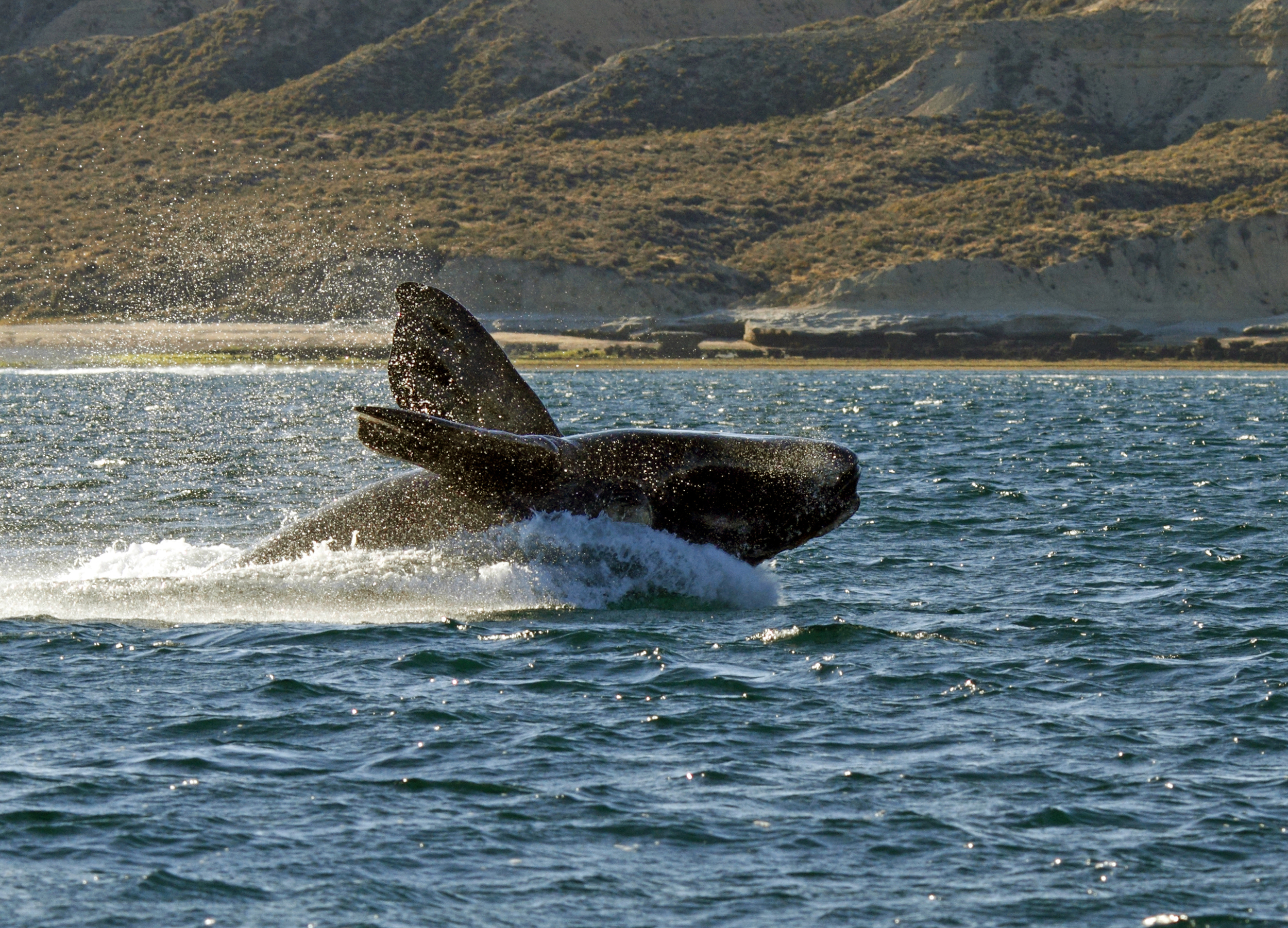 Southern Right Whale breaching in Golfo Nuevo, Chubut, Patagonia
