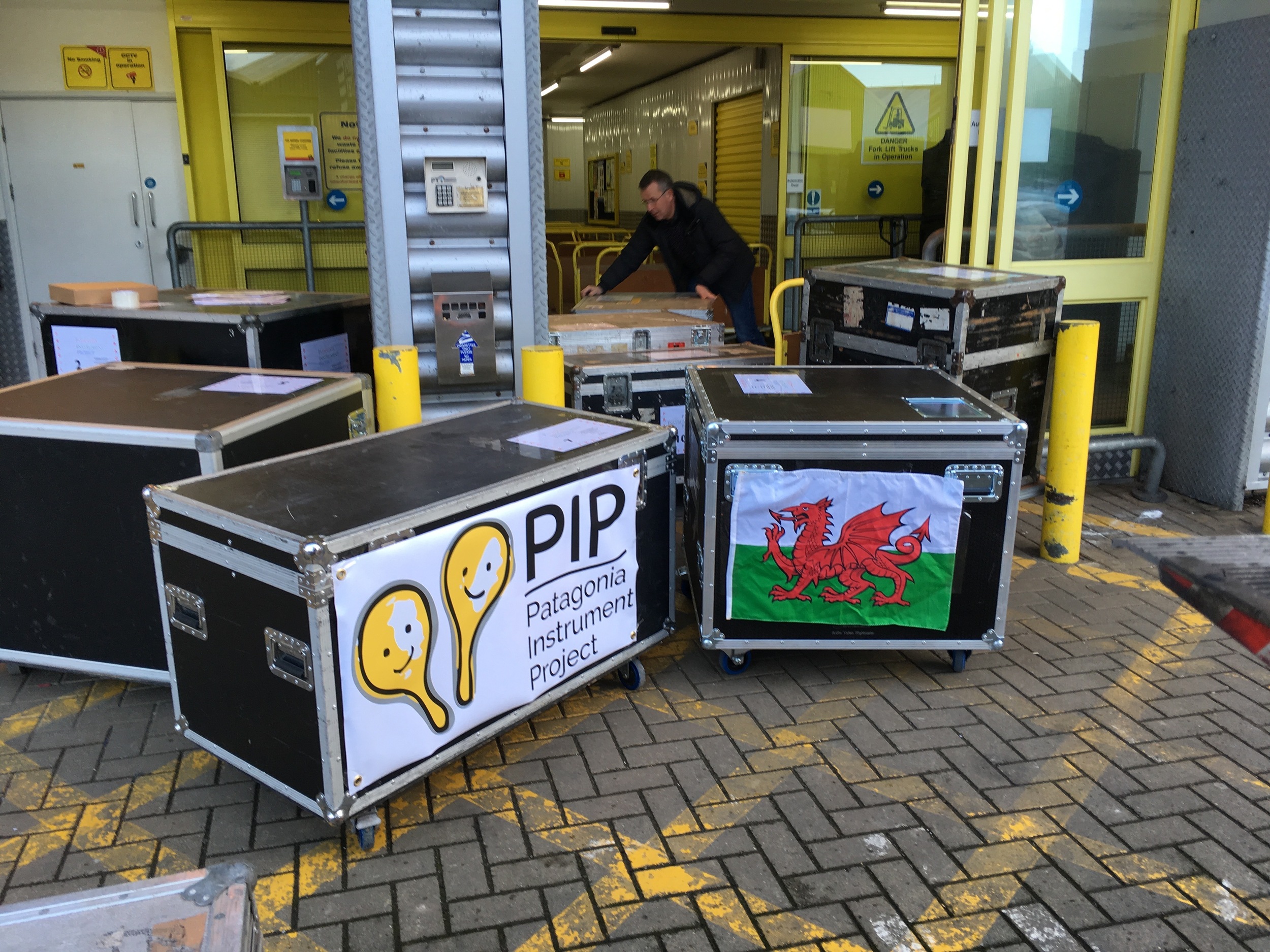 2018 - Phil assembling the flight cases full of instruments ready to be collected at the start of their 7,500 mile journey to Chubut, Patagonia.