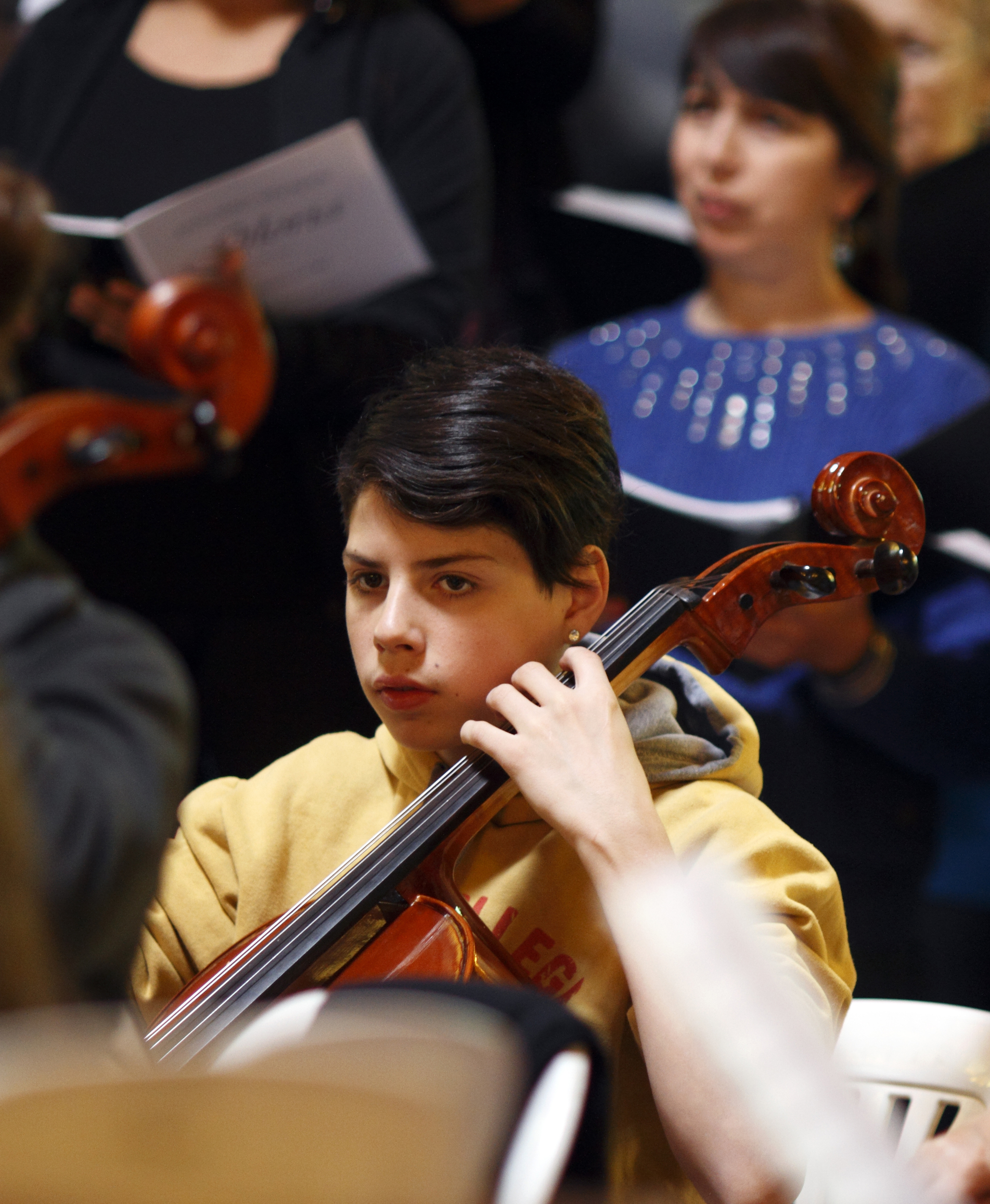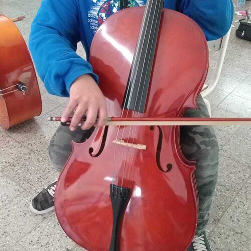 A Patagonian cello student in rehearsal
