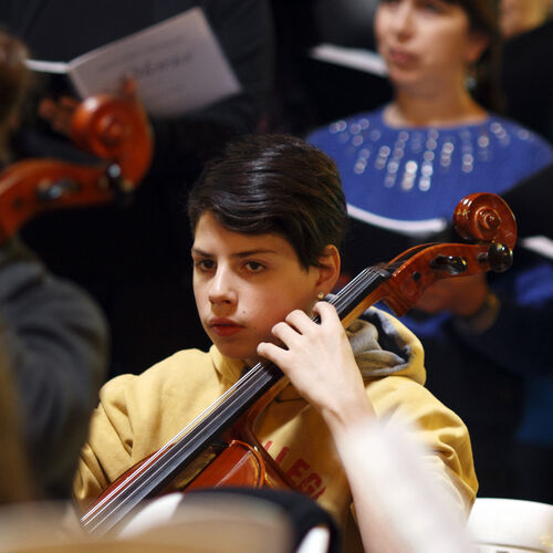 Young Cellist from Chubut playing in a side-by-side rehearsal.