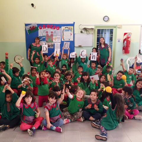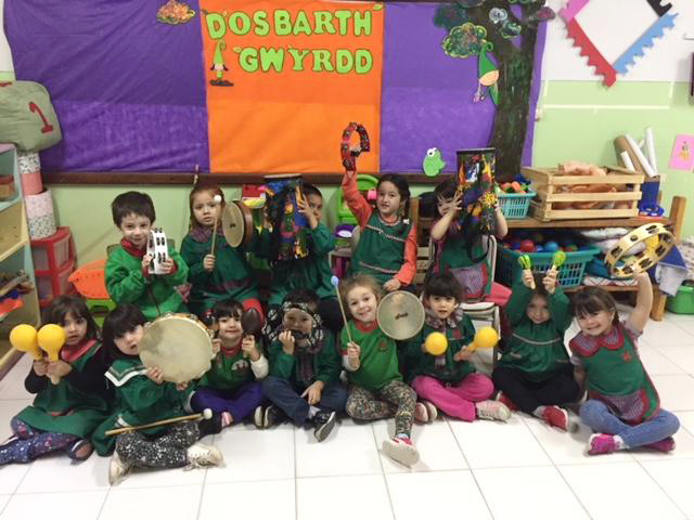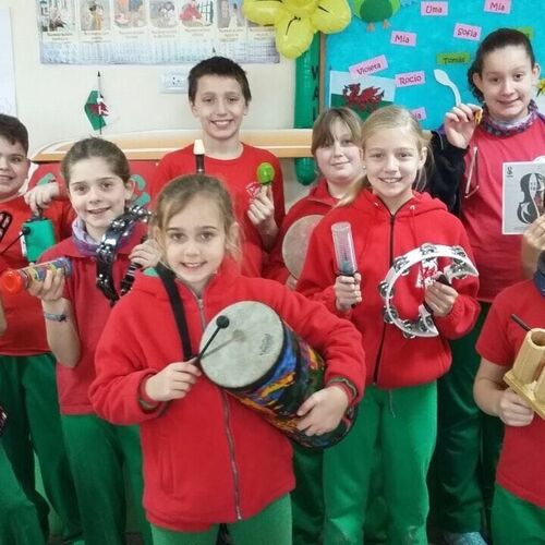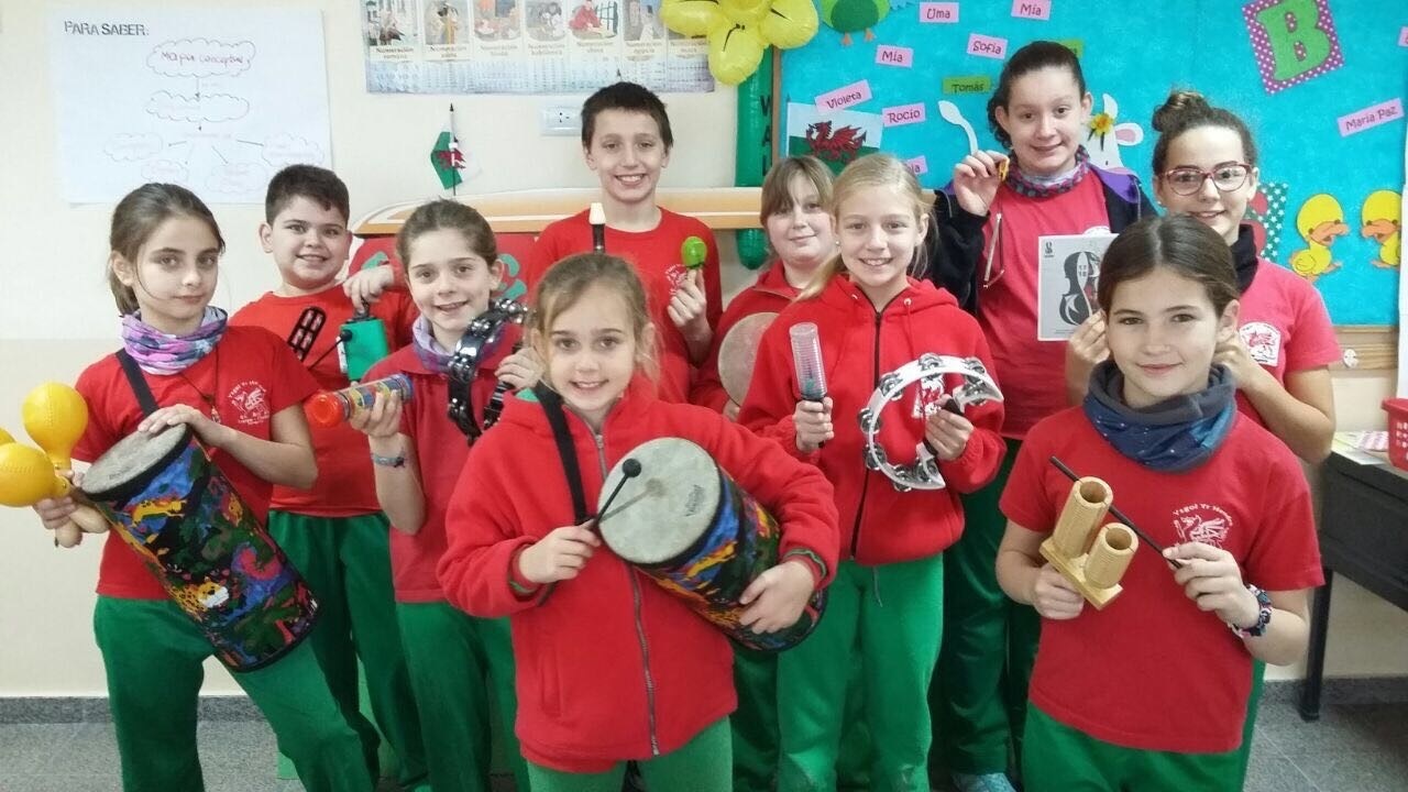 2019 -Visiting Ysgol y Cwm Trevelin, to hear the children play many of the instruments that arrived in 2018
