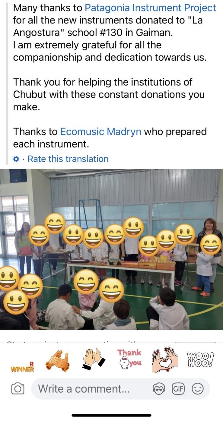 Your donations make it possible for us to provide these grants to the groups we support in Patagonia. New instruments, repairs and consumables are equally important, and you can see the impact the level of support we offer has here.