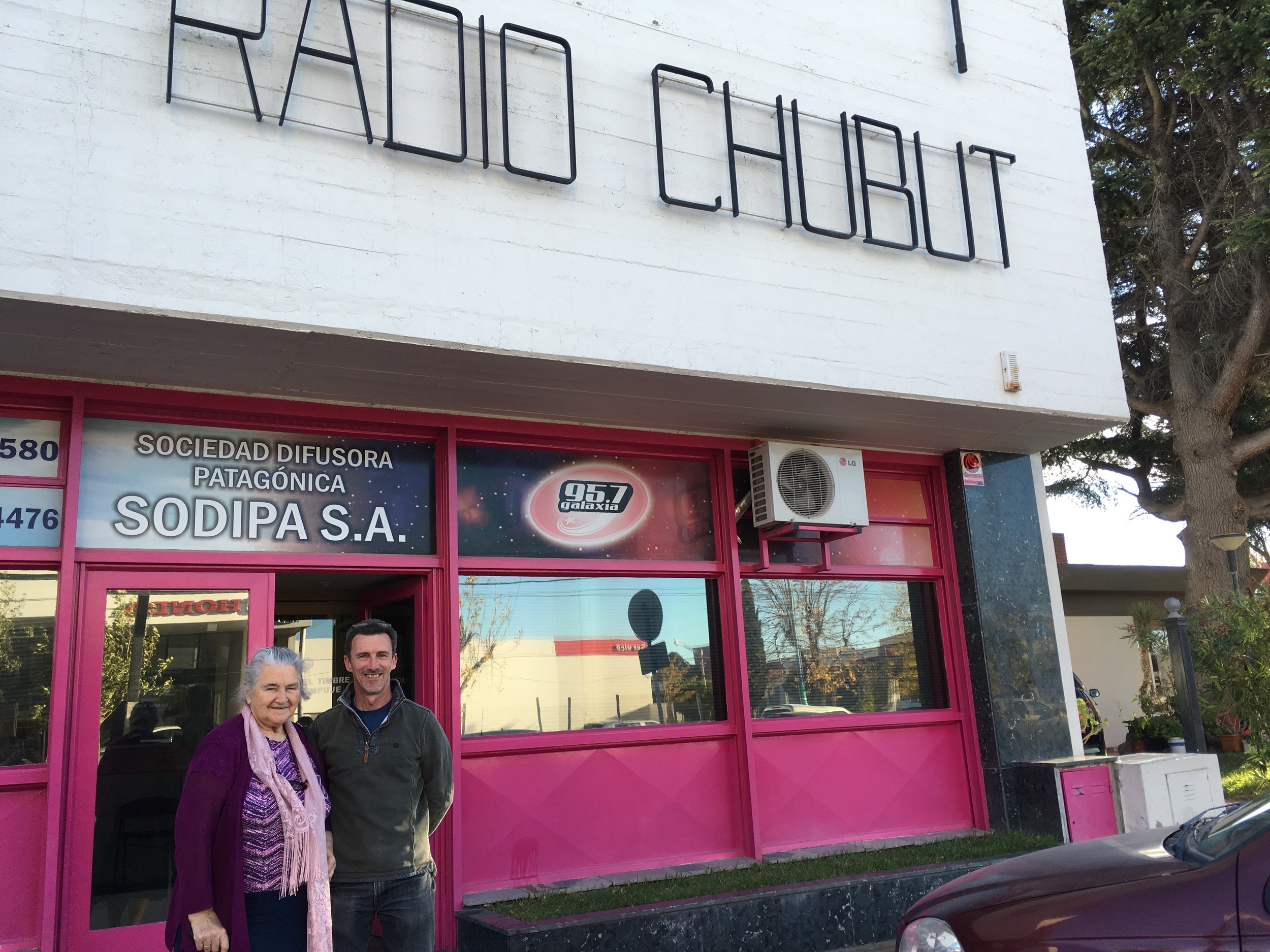 2018 - Radio Chubut building, with Chris and Eluned, who interviewed Chris about the shipment in transit , and our future plans.