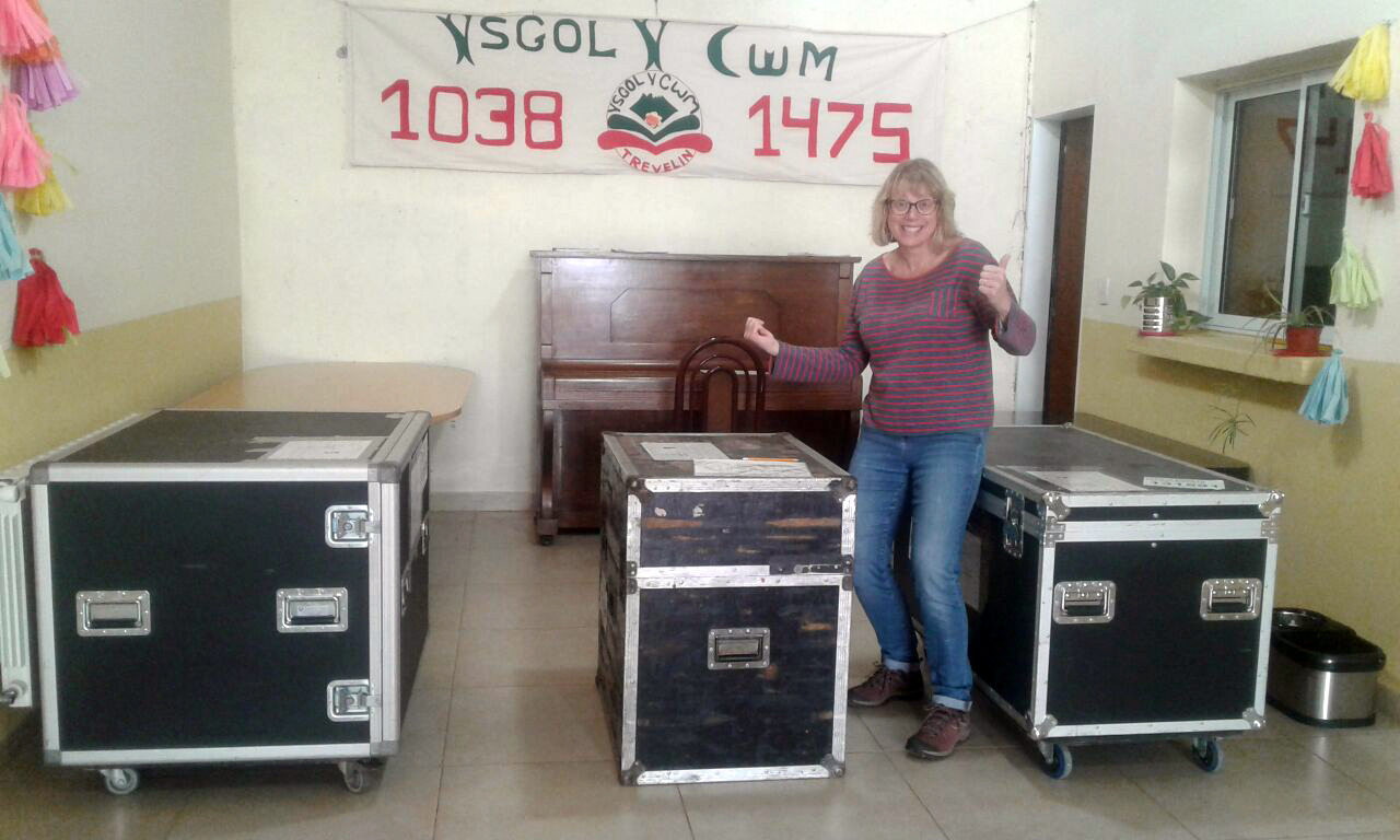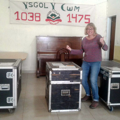 2018 - Cases of school instruments arrive at Ysgol Y Cwm in Trevelin.